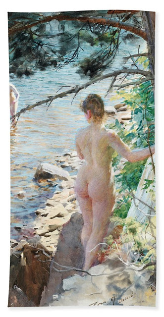 En la entrada del 15-04-23 ya mostré la obra de Ernst Ludwig Kirchner, quien no sólo plasmó en algunas de sus obras, de estética fuertemente expresionista, escenas de nudismo, sino también, como indiqué allí, lo practicó junto a otros artistas y amigos de su entorno. Hoy voy a recoger unas muestras de la obra de tres extraordinarios pintores, de edades muy semejantes, que, muy alejados en el espacio, coincidieron en pintar o dibujar con frecuencia escenas naturistas (protagonizadas, hay que notarlo, generalmente por mujeres).